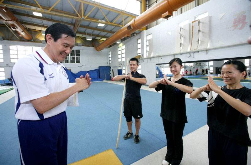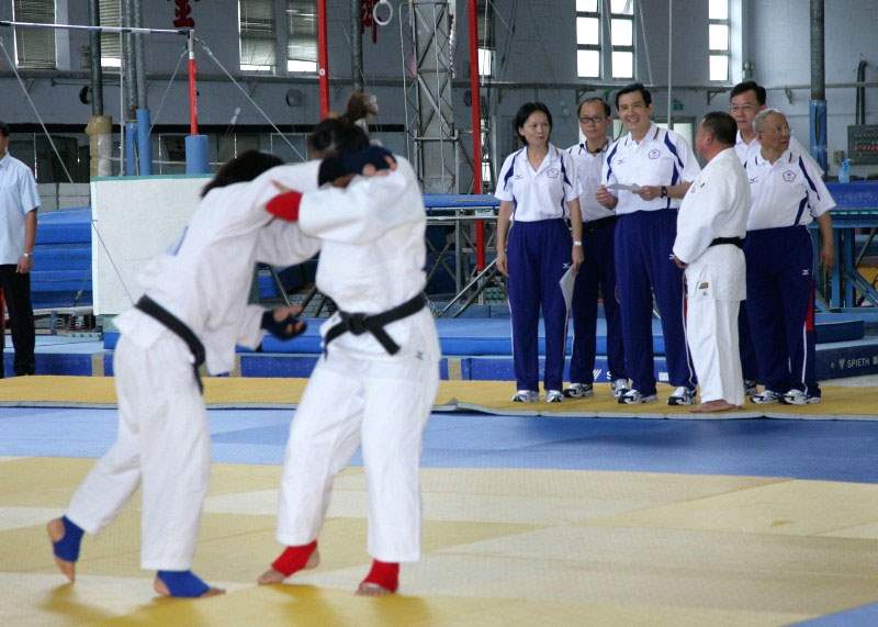 總統抵達訓練中心後,即參觀選手們的訓練場地,包括體操館、田徑場、游泳池及體育館等,實地瞭解柔術、武術、橄欖球、飛盤代表隊、拔河隊、空手道及蹼泳等項目選手們的訓練情況,總統一一與他們握手寒暄,肯定他們的辛苦,同時給予熱情的鼓勵。