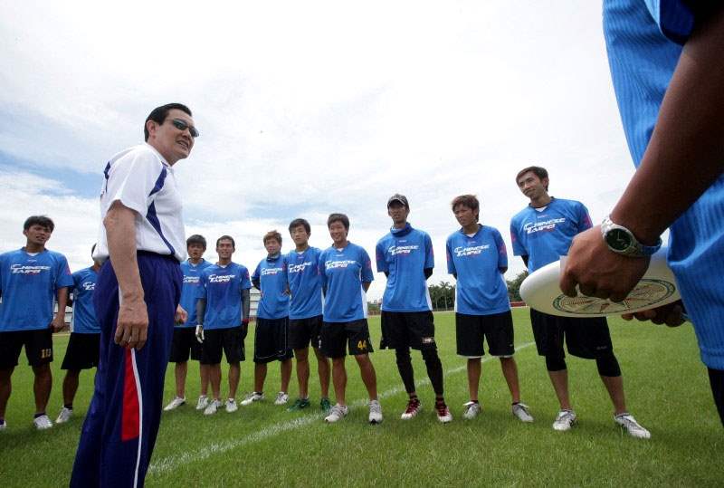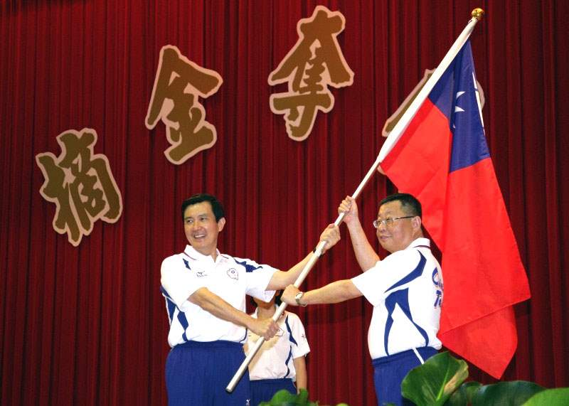 馬英九總統今天上午前往高雄左營訓練中心參加2009年第8屆世界運動會中華代表團授旗儀式,向我參賽選手慰勉致意,並期許大家勇奪佳績,為國爭光。