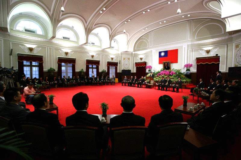 藥師公會全國聯合會一行,下午由理事長連瑞猛率領,衛生署副署長宋晏仁陪同,前來總統府拜會總統,總統府副秘書長賴峰偉也在座。