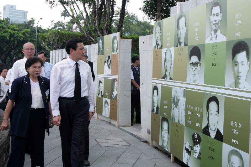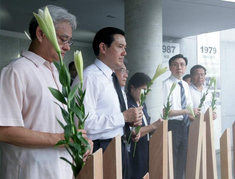 馬英九總統今天上午前往台北市介壽公園出席「白色恐怖政治受難者紀念追思儀式」,除應邀致詞,並頒發回復名譽證書,隨後為受難者默哀、與受難者家屬繞行紀念碑及獻花。
