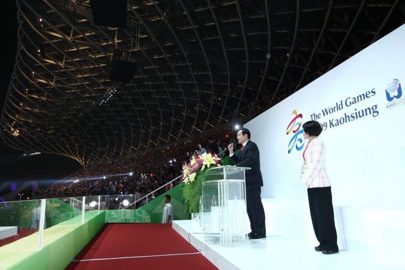在總統分別以中、英文表示「本人現在宣布:2009高雄第八屆世界運動會開始(I now declare open the 8th edition of the world games in Kaohsiung 2009.)」之後,全場歡聲雷動,為2009世界運動會揭開序幕。