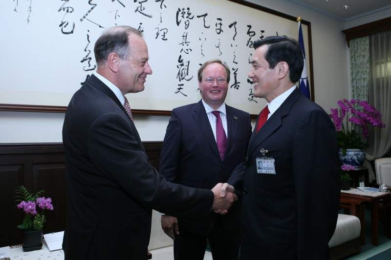 范巴倫先生由荷蘭駐台代表胡浩德(Menno Goedhart)陪同,前來總統府晉見總統,國家安全會議副秘書長何思因、外交部次長林永樂也在座。