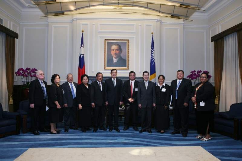 馬英九總統今天上午在總統府會見馬紹爾群島共和國總統湯敏彥伉儷(Litokwa Tomeing),對訪賓遠道來訪,代表政府表達誠摯的歡迎之意;雙方並就兩國未來如何擴大交流合作,進行廣泛的意見交換。