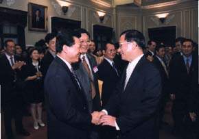 陳總統水扁先生今天下午在總統府接見中華民國不動產仲介經紀商業同業公會各縣市理事長暨理、監事代表,肯定該會為提升國內不動產仲介服務品質所作的努力與貢獻。