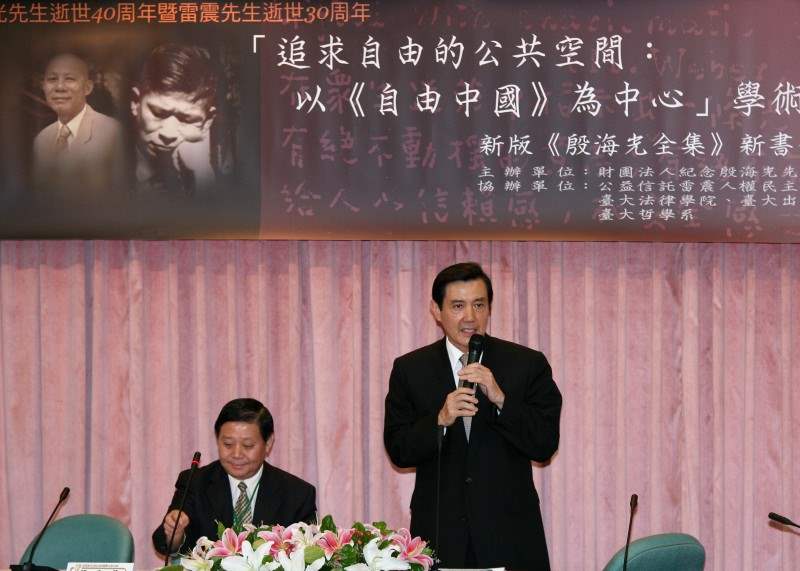 馬英九總統今天下午出席殷海光先生逝世40週年與「自由中國」發行人雷震先生逝世30週年─「追求自由的公共空間:以《自由中國》為中心」學術研討會,並應邀致詞。