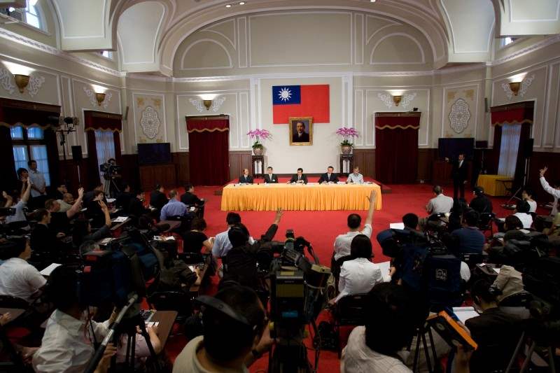 馬英九總統今天下午在總統府舉行英文記者會,向國際媒體說明本次莫拉克颱風所帶來的傷害、救災情況及重建工作。蕭副總統、行政院副院長邱正雄、交通部部長毛治國、國防部部長陳肇敏也出席記者會。
