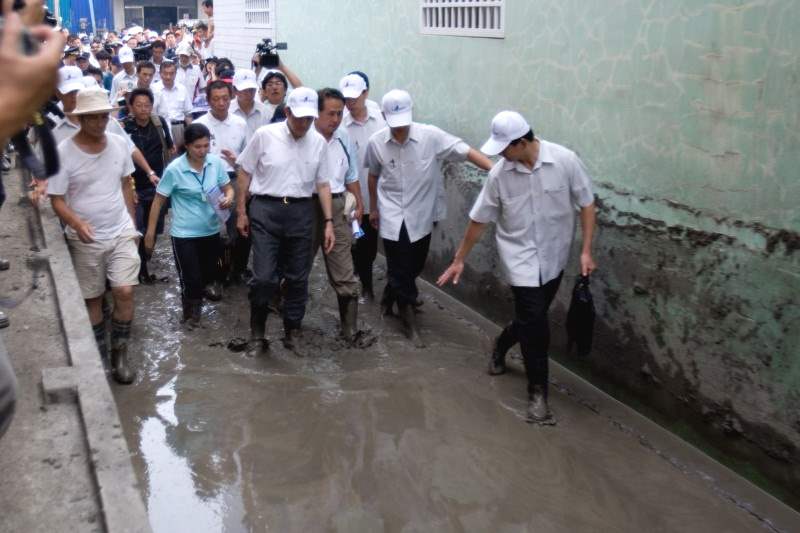 此外,屏東縣林邊鄉因仍有積水且淤泥甚深,對民眾生活造成難以想像的傷害與清理家園的諸多不便,總統親自前往探視,並一一實地觀察各處積水及淤泥堆積處,尤其林邊車站周遭民房,總統挨家挨戶聽取災民心聲,並給予回應,承諾政府一定會儘快做好清除積水、淤泥的工作,並妥善安置,讓大家的生活不會繼續受到影響。他請辛苦的國軍官兵弟兄們,必要時加派人力,兩天內清除側溝、一週內排除污水、污泥,務必達成任務,解除民眾痛苦。