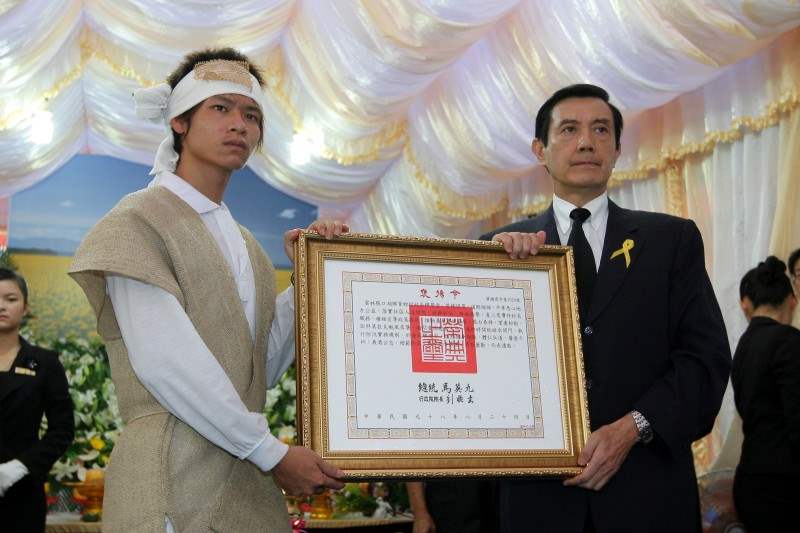 稍早,總統前往雲林縣口湖鄉參加青蚶村村長繆榮堂追思公祭,並頒贈褒揚令,表彰他投入救災、因公殉職的義勇精神。