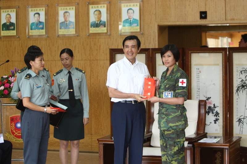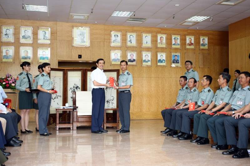 隨後,總統也特別接見並表揚救災有功的國軍弟兄代表,肯定國軍在莫拉克颱風肆虐後,為災民所作的付出與貢獻。