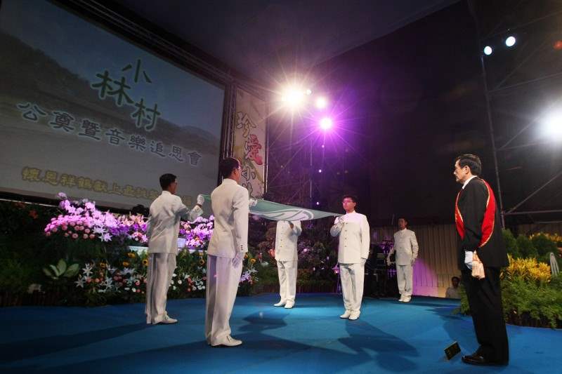 晚間,總統出席小林村罹難者公奠暨音樂追思會並擔任主奠官。總統致詞時重申政府一定會全力協助小林村重建,面對大家失去親人的錐心之痛,總統表示,未來政府一定會深切反省,不要讓這種悲劇再度發生,他保證一定會保障大家的安全,提供大家安全的住所,這是他身為總統的責任,希望大家走出悲情,一起來重建小林,發揚小林的精神。最後,總統也帶領全體與會人員一起為小林村所有罹難者默哀,以表追思。