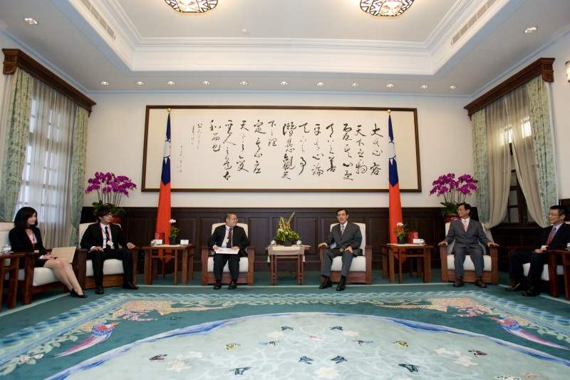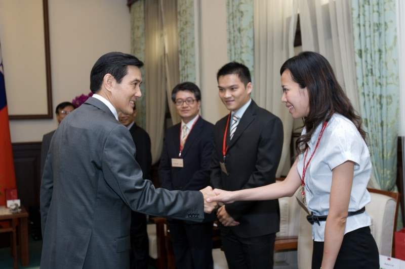 馬英九總統今天上午在總統府接見代表中華民國參加「第50屆傑賽普國際法模擬法庭辯論賽」(50th Jessup Moot Court Competition)榮獲訴狀獎第2名的東吳大學師生,對同學的傑出表現與師長的大力支持,表達肯定與感謝之意。