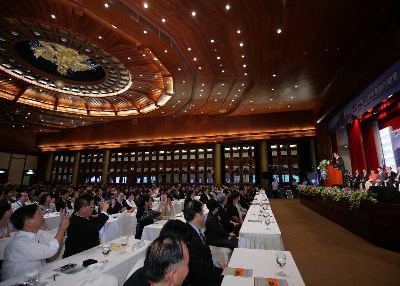 總統表示,過去一年政府致力改善兩岸關係,不但降低兩岸間的緊張情勢,同時出現和平曙光,更重要的是,由於開放直航,讓台商們在進行整體長期佈局時有了嶄新的契機與環境。過去政府要求赴大陸投資的廠商,投資額不得超過產業淨值的40%,現在政府提高到60%,如果企業在台灣設立行銷、研發總部或為跨國公司的子公司將不受60%的限制,在投資額度放寬後,赴大陸投資的企業並無明顯增加,反而回台投資的企業增加許多。「鬆綁」與「重建」是台灣經濟發展的重要政策,過去台灣以美國與歐洲為主要貿易市場,現在應該要做些改變,擴大貿易市場,分散到俄羅斯、印度、巴西等金磚四國。過去我們將大陸視為加工工廠,加工後再外銷至歐美等國,我們應該分散外銷市場,不只將大陸視為工廠,應進一步作為我們的產品銷售市場,增加我們的經濟利益,這是政府要和大陸簽訂「兩岸經濟合作架構協議」(ECFA)的原因,雖然可能會影響部分國內產業,經濟部將會提出相關措施以為因應,讓這些產業度過難關。對於與大陸簽訂「兩岸經濟合作架構協議」,國內有近6、7成的民眾表達對政府的支持。