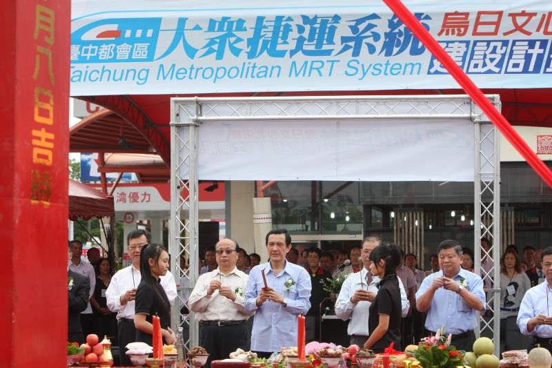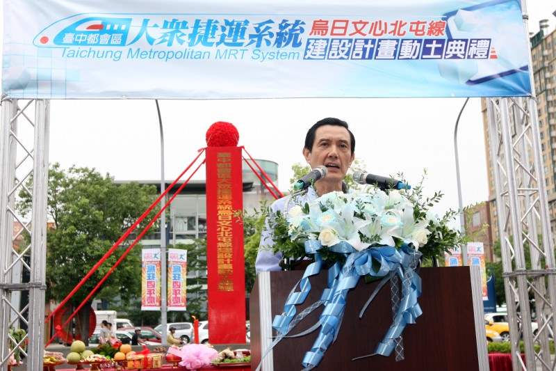 馬英九總統上午前往臺中市出席「臺中都會區大眾捷運系統-烏日文心北屯線建設計畫」(綠線)動土典禮。
