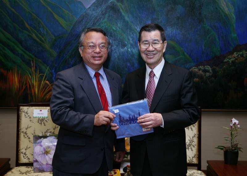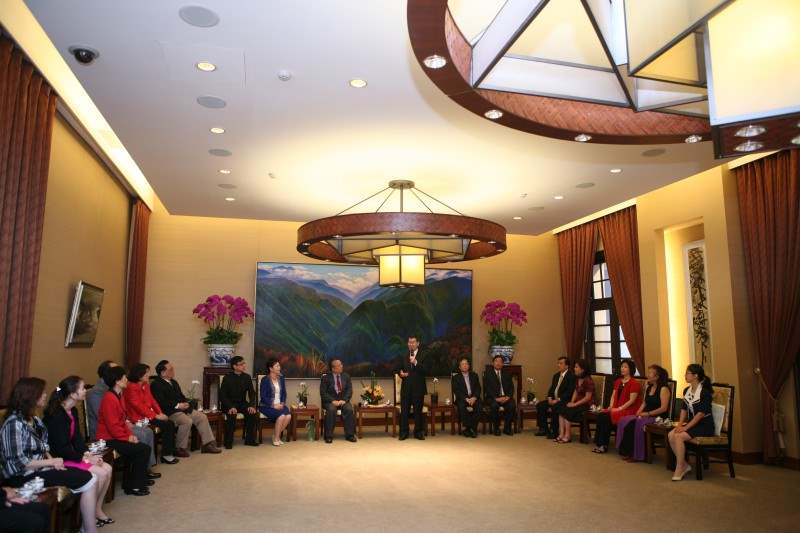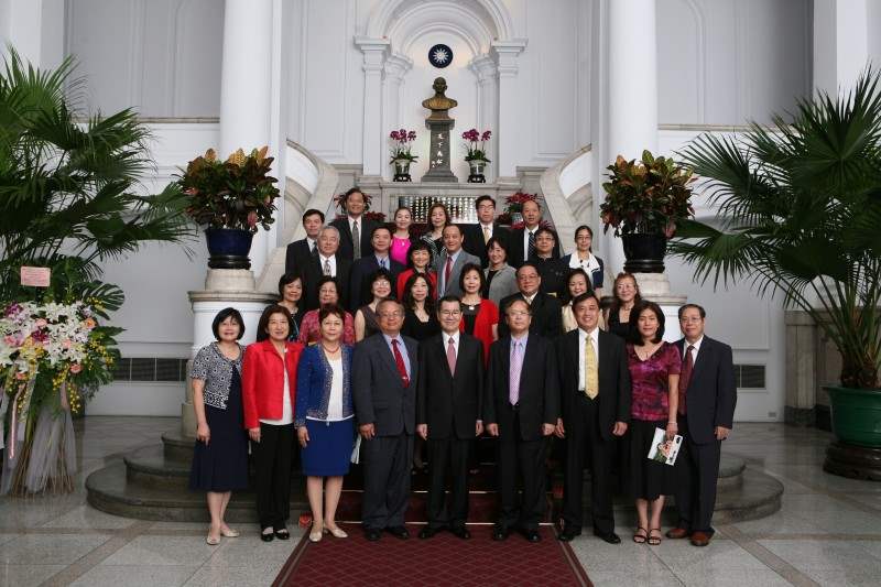 「全美台灣同鄉聯誼會回國訪問團」一行25人,上午由會長周賢孟帶領、僑務委員會委員長吳英毅陪同,前來總統府拜會副副總統。