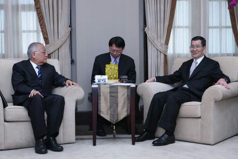 日本能源經濟研究所內藤正久理事長、亞太能源研究中心小林健二所長、日本交流協會台北事務所田邊正美副代表及渡邊明夫主任等人,上午由經濟部能源局王運銘副局長陪同,前來總統府拜會副總統。