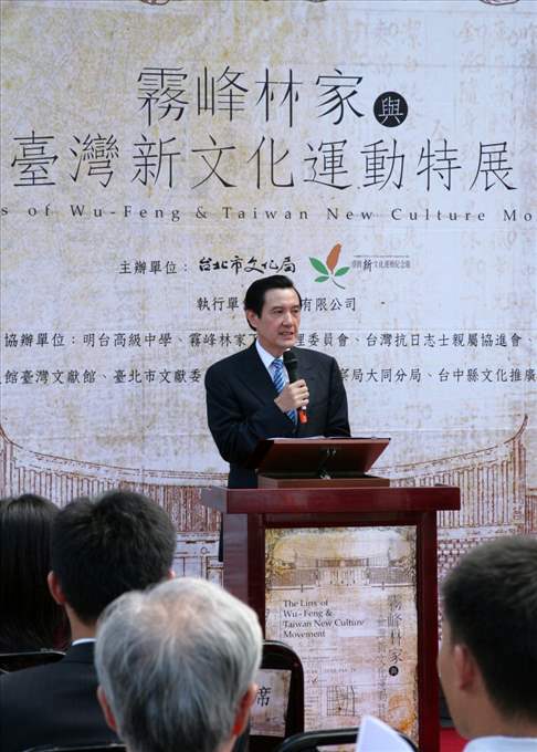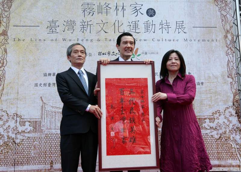 馬英九總統今天上午出席「霧峰林家與臺灣新文化運動特展」,致詞感謝霧峰林家為台灣政治、社會、文化所作的付出與貢獻,並致贈「三代民族英雄 百年臺灣世家」墨寶,由明台高中林芳媖董事長及抗日志士協進會林光輝會長代表接受。