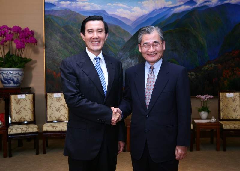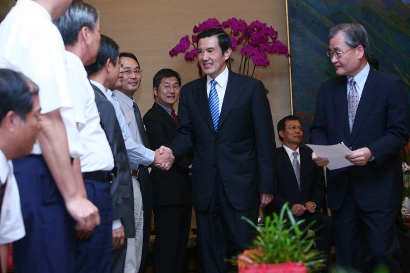交通部八八水災防救災有功人員等一行,下午由交通部部長毛治國、次長張邱春、次長陳威仁陪同,前來總統府晉見總統,總統府秘書長廖了以也在座。
