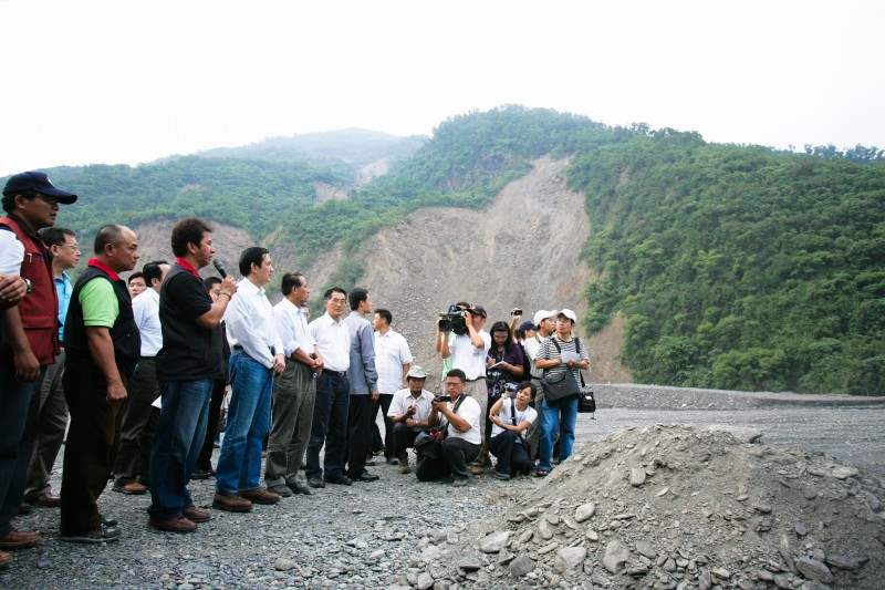 隨後總統由屏東縣長曹啟鴻、縣議會議長周典論、來義鄉長竇望義等人陪同,視察來義村東部落堤防,了解88風災受損情形,並與鄉親座談。總統表示,來義鄉所有的村落被鑑定為都不安全,遷村不能避免,希望鄉民在10月底汛期結束後,明年5月汛期來臨前,趕快做好遷村的決定。