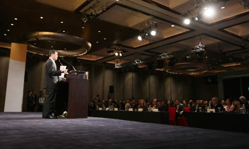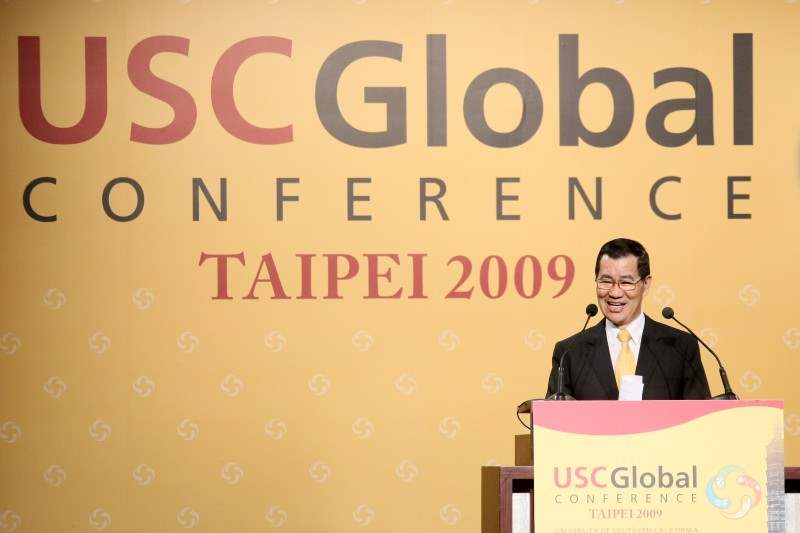 蕭萬長副總統今天上午出席「第五屆南加大全球大會」,並以「台灣如何走出金融海嘯」為題,發表英文演說。