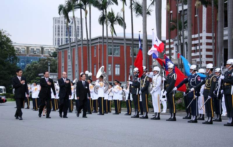 呈遞國書儀式下午5時在總統府進行。古卡隆大使由外交部禮賓司代司長劉德立陪同,向總統呈遞到任國書,總統府秘書長廖了以、外交部部長楊進添在場觀禮,儀式莊嚴隆重。