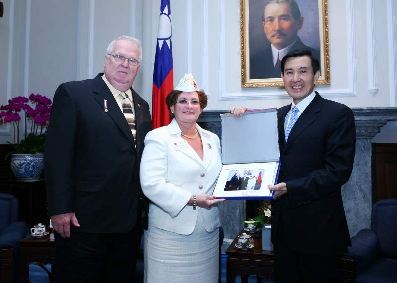 馬英九總統今天上午在總統府接見美國韓越戰退伍軍人協會總會長密思庫林(Duane J. Miskulin)伉儷與美國婦女會總會長派寧(Patty A. Piening)伉儷一行,代表我國政府表達誠摯歡迎之意。