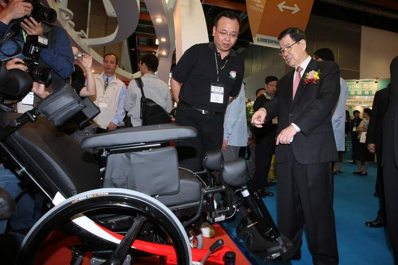 蕭萬長副總統今天上午出席在台北世貿中心舉辦的「2009年台北國際醫療展覽會開幕暨創新產品獎頒獎典禮」,除頒發獎座予得獎廠商,並參觀展區各處,對台灣醫療產業創新研發的精神與成果,留下深刻印象。