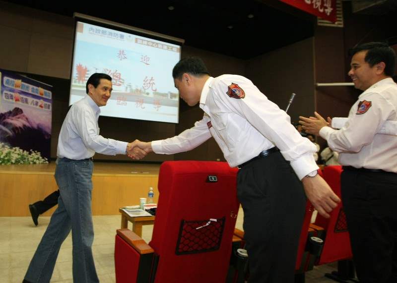 總統下午由行政院長吳敦義、南投縣長李朝卿等人陪同,前往南投縣竹山鎮視察即將落成的「消防訓練中心」。在聽取消防署及縣政府簡報後致詞表示,八八水災後,整個災害防救系統已有重大改變,未來消防署也將改名為災害防救署,但消防訓練中心以火災、地震防救訓練為主,並未包含核能及傳染病防救,希望未來能將這兩項納為代訓業務的參考。