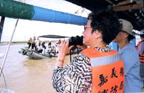下午,副總統在嘉義縣陳縣長及立委陪同下,搭乘漁船溯朴子溪至東石漁港,除在船上聽取該縣環保局就濱海風景區規劃案所做的簡報外,對沿岸的紅樹林與留鳥鳥群及獨特的河岸風光,留下深刻的印象,她也就風景區規劃案提出一些看法供該縣參考。