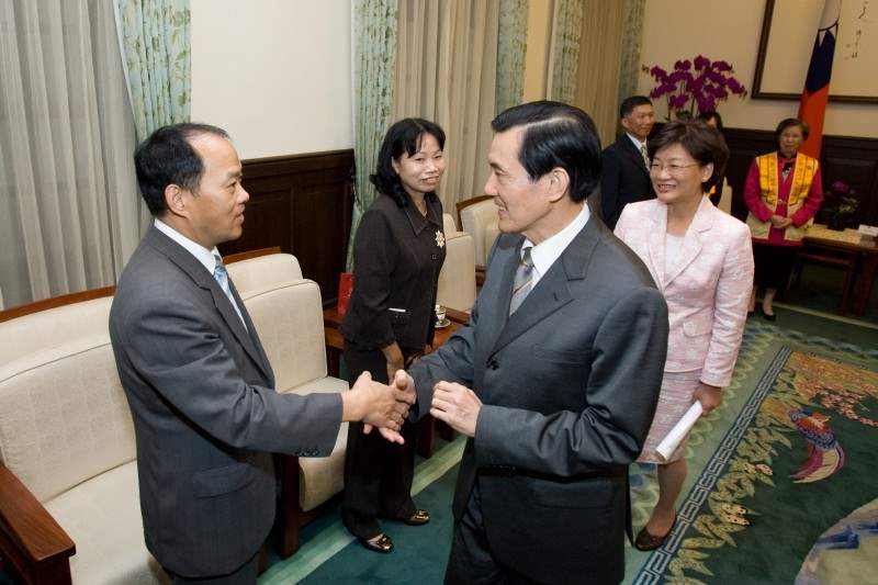 98年度參與監所教化及保護事業有功人員與團體代表下午由法務部部長王清峰陪同,前來總統府晉見總統,總統府副秘書長賴峰偉也在座。