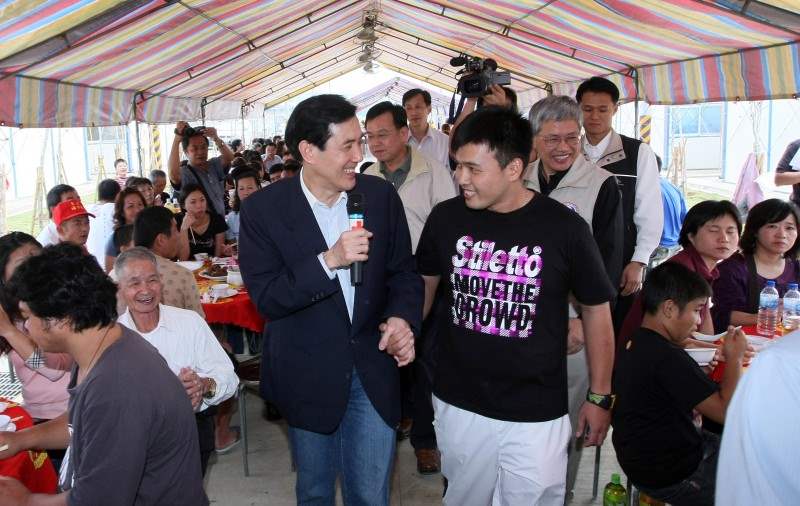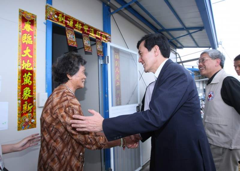 隨後總統一行人前往月眉五里埔新小林社區訪視,聽取中華民國紅十字會「八八水災小林村家園重建計畫」簡報,並參觀組合屋與鄉民座談及餐敘。