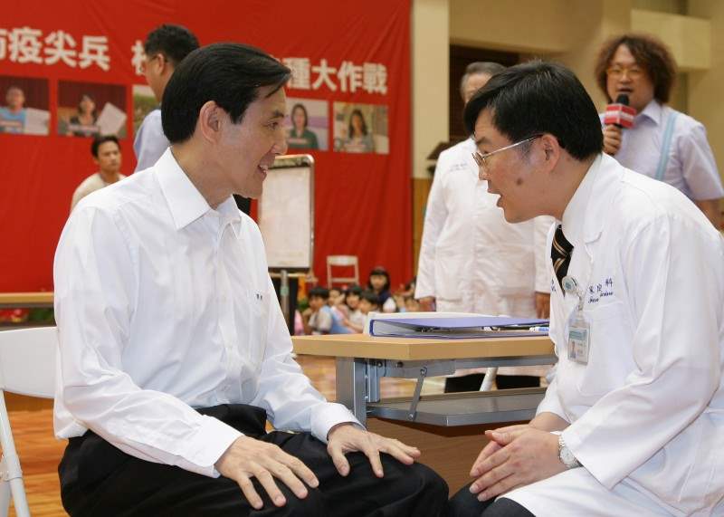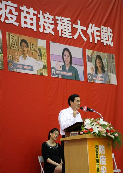 馬英九總統下午前往臺北縣中和市光復國小施打國產的H1N1新流感疫苗暨視察該校施打疫苗情形。