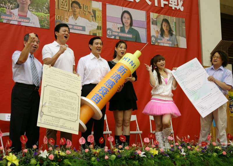 總統表示,自從世界衛生組織對H1N1新流感大流行提出警告後,我國就開始進行各項防疫工作,經過衛生單位強力宣導以及大家全力配合防疫,成功延緩了疫情爆發的高峰時間。先前我們從國外所購進的新流感疫苗已在月初開始施打,而由國光公司所自行製造的500萬劑新流感疫苗,已經通過人體臨床實驗,從今日開始分批施打,其餘還有500萬劑疫苗也將在今年底前製作完成。