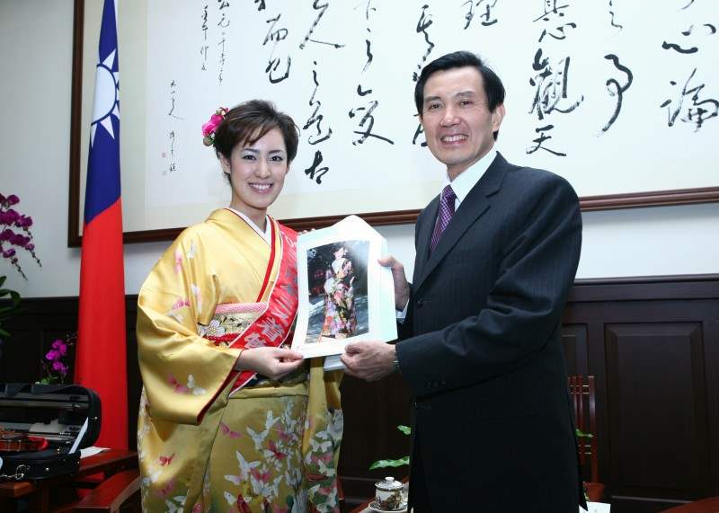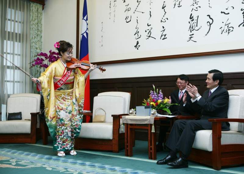 馬英九總統今天上午在總統府接見「2009年日本和服小姐」松本蘭女士一行,代表政府表達誠摯歡迎之意,並聆賞松本女士以小提琴演奏台灣民謠「望春風」與日本歌曲「化為千風」。