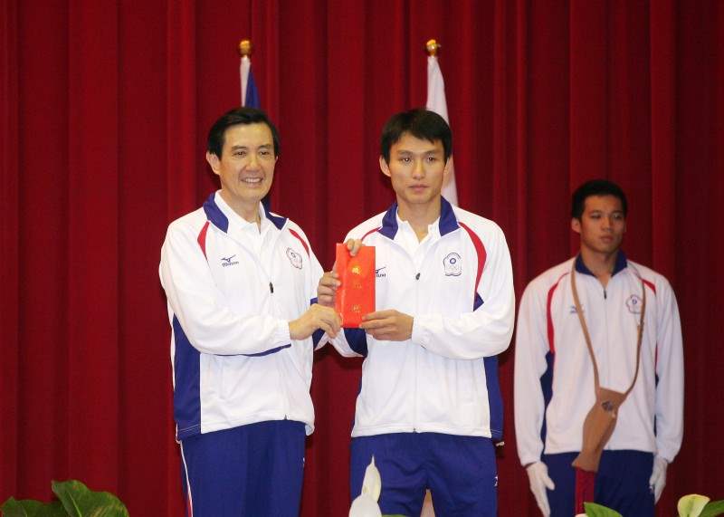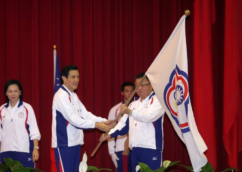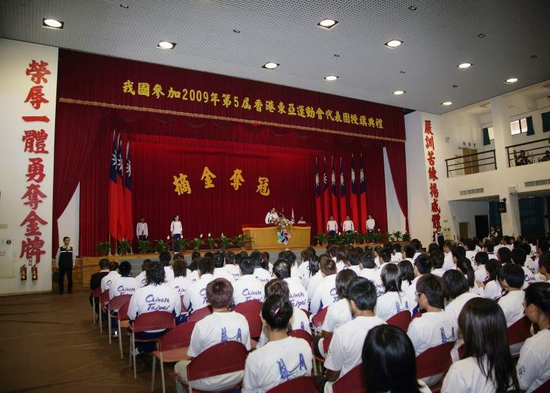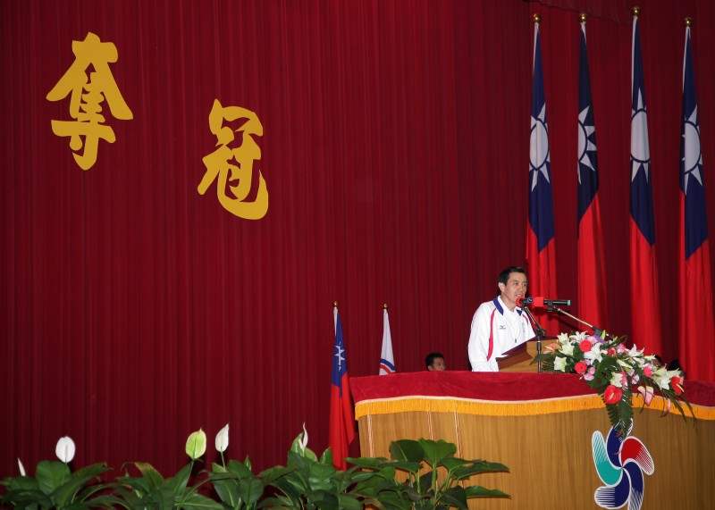 總統由行政院體育委員會主任委員戴遐齡、中華東亞運代表團團長蔡辰威、總領隊林鴻道等人陪同出席,除授國旗、中華奧會會旗給代表團團長外,並頒發20萬元加菜金給代表隊。