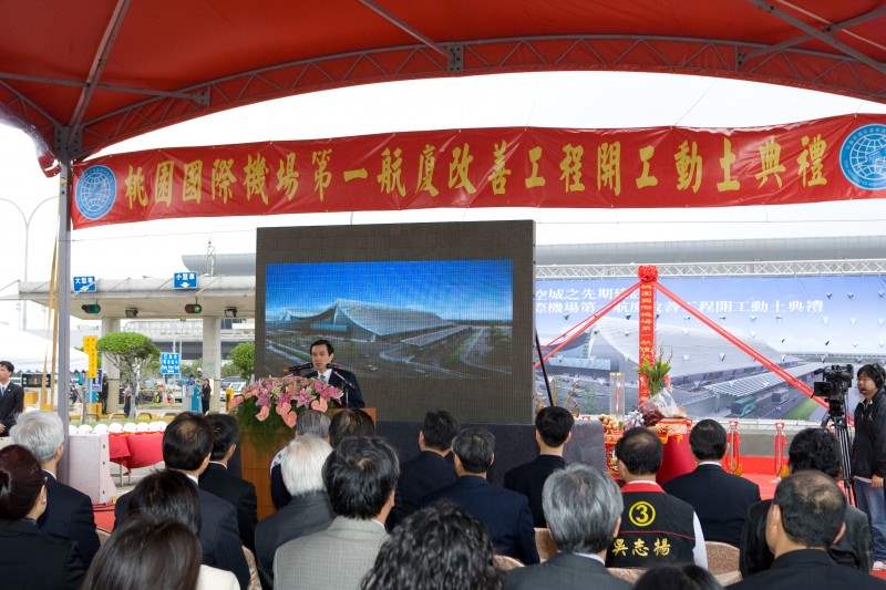 馬英九總統今天上午前往桃園出席「桃園國際機場第一航廈改善工程」開工動土典禮,期許工程如期如質完工,提供來台旅客最佳服務,同時提升我國機場的國際競爭力。