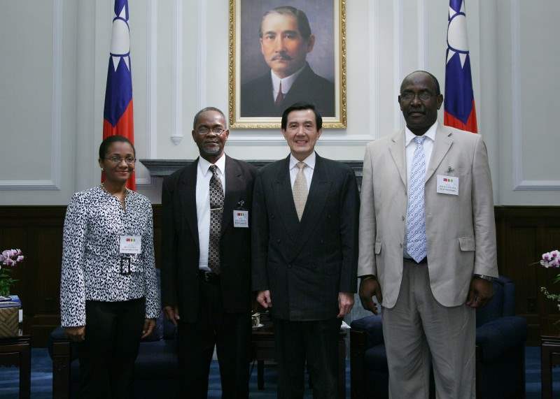 聖文森國會議長亞歷山大、副議長蘿芙特(Rochelle Forde)女士及前內閣秘書長摩根(Bernard Morgan)等人,下午由我外交部次長侯清山陪同,前來總統府晉見總統,國安會副秘書長何思因也在座。