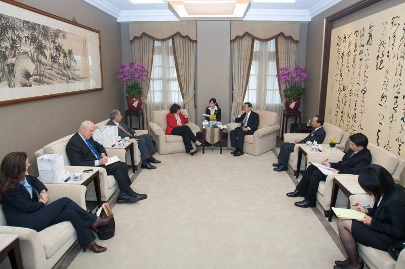 麥修絲會長、台維昇董事(Aso O. Tavitian)、副會長包道格及史蜜絲資深研究員(Taiya M. Smith)上午由外交部次長侯清山陪同,前來總統府拜會副總統。