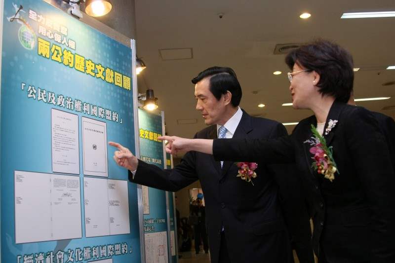 我在4月22日簽署施行法,根據中央法規標準法3天後4月24就施行,但實行日期則由行政院決定,就是明天12月10日。至於這兩項公約,我是在今年5月14日邀請駐華使節與代表在台北館簽署,代表中華民國批准兩公約,之後送到聯合國,當然是沒有成功存放,原本規定存放三個月後生效,但我們國內法將於明日生效,一樣可以達到遵守國際公約的目的,這樣的做法,將來對於我國無法參加的國際公約,可以用國內法化的方式,讓我們也成為國際公約適用的國家,使國際社會感受到台灣雖被排拒在聯合國之外,但願意承擔國際義務的精神與決心是非常清楚的,這點非常重要。