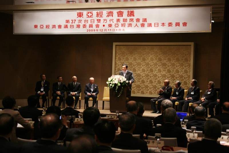馬英九總統上午出席「東亞經濟會議第37次台日雙方代表聯席會議」開幕典禮,期盼藉由此次會議,能持續促進台日兩國的各項交流合作,並預祝本次會議圓滿成功。