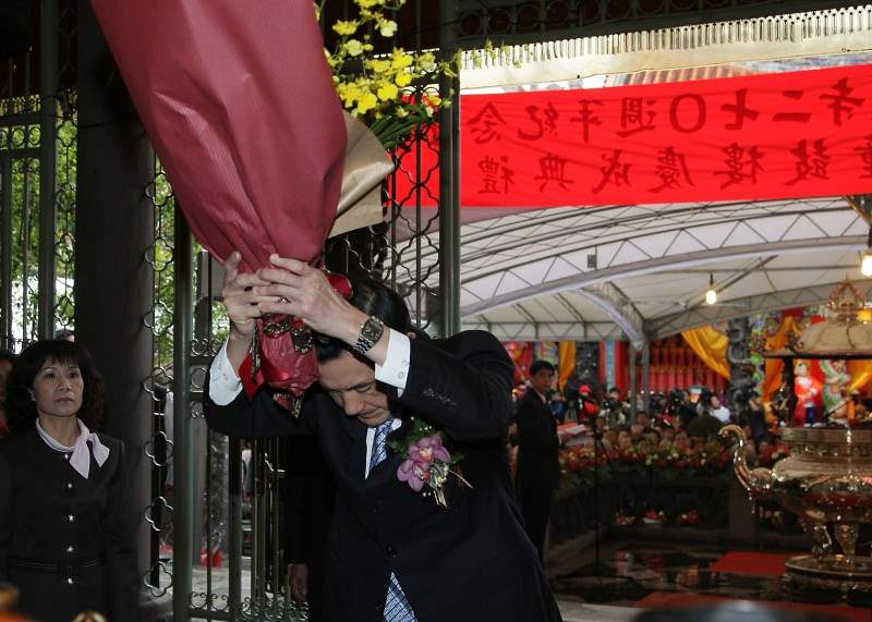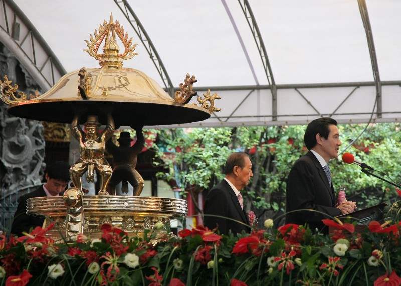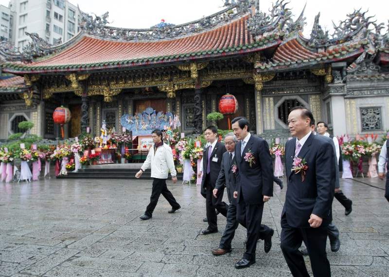 馬英九總統上午參加「財團法人臺北市艋舺龍山寺建寺270週年紀念暨圓通寶殿、鐘鼓樓重修慶成典禮」,祈願觀音佛祖庇佑臺灣、並祝福今天的慶典活動圓滿順利。