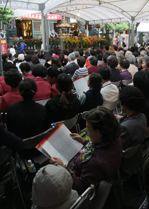 總統表示,在艋舺興建已經270年的龍山寺,供奉著慈眉善目的觀世音菩薩。在民眾的心目中,觀音佛祖庇佑眾生,讓大家順利在艋舺落地生根,如今龍山寺不僅成為北臺灣民眾的信仰中心,也是國家的的二級古蹟,與臺北101、國立故宮博物院、中正紀念堂並列為外國觀光客到臺北旅遊的四大名勝。今天我們能夠安穩的生活在大臺北地區,除了要感懷先人流血流汗,為我們開疆闢土之外,也要感謝觀音佛祖的慈悲庇佑。