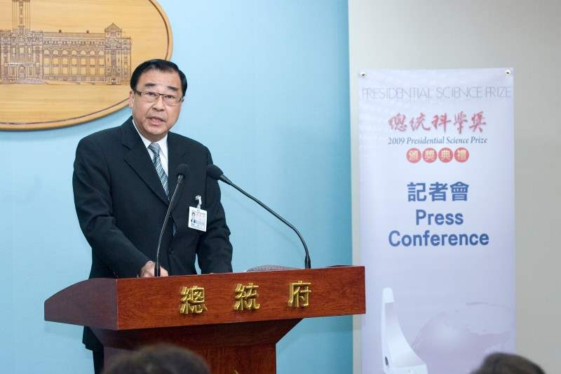 總統府秘書長廖了以今天下午主持在總統府舉辦的「2009總統科學獎」記者會,並致詞。