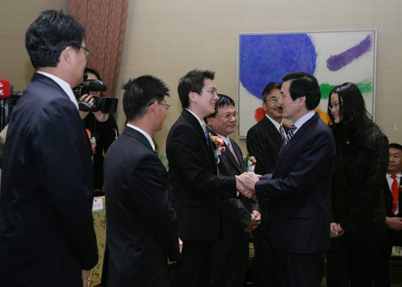 馬英九總統今天下午在總統府接見「中華民國第32屆、海外華人第18屆創業楷模」得獎者一行,感謝青創會辦理創業楷模選拔、為國家發展而努力的付出,也恭喜所有得獎楷模,期許大家多多投資與消費,協助政府振興經濟。