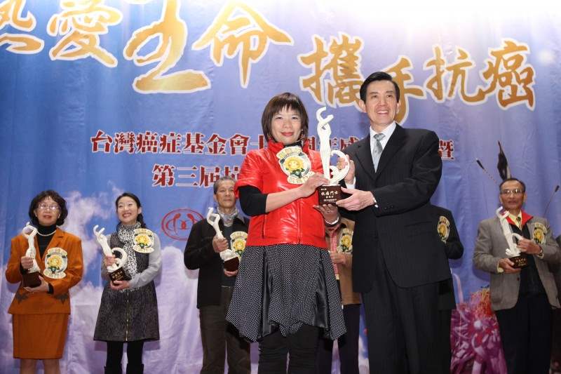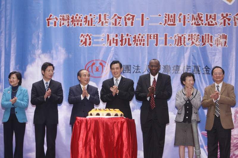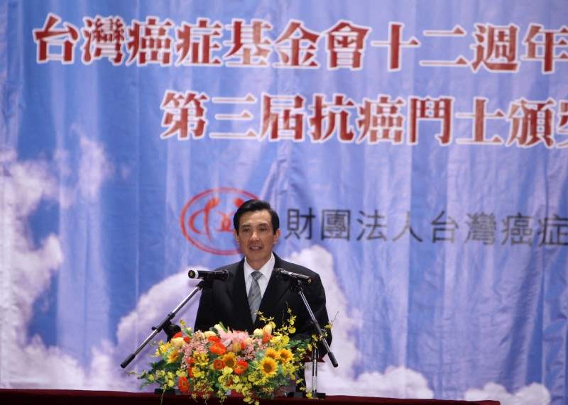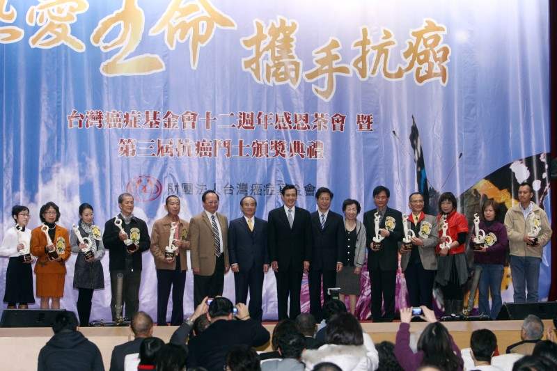 馬英九總統今天下午出席台灣癌症基金會12週年感恩茶會暨「第3屆10大抗癌鬥士」頒獎典禮,親自頒獎給10大抗癌鬥士,並致詞。
