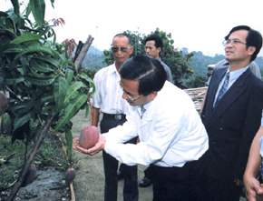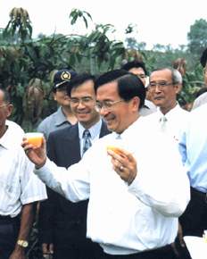 隨之,總統並在台南縣蘇煥智縣長陪同下,前往台南縣玉井鄉郭文忠農友的芒果園,視察芒果盛產以及採收的情形。