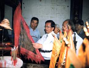 下午,總統也在台南縣蘇煥智縣長的陪同下,轉往台南縣楠西鄉鹿田村參觀具有三百年歷史,同時也是台灣現有保存最大、最完整的江家古厝參觀。