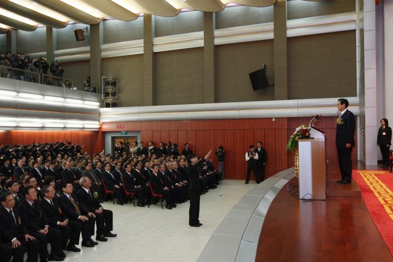 今天英九非常高興前來主持「調查班第46期結業典禮」,首先要恭喜76位同學,經過一年的嚴格訓練後順利結業。特別是,這次有35位是女性同學,占全體學員46%,可說巾幗不讓鬚眉。我也要藉此感謝調查局全體同仁,長期以來為維護國家安全與社會正義所付出的努力。