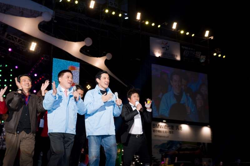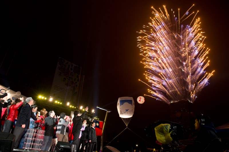 馬英九總統今天晚間前往台北市政府前廣場參加「台北最HIGH新年城-2010跨年倒數」活動,並致詞表示,他很高興再度回到台北市政府參加跨年晚會,祈願未來一年景氣更好、失業更少、收入更高、股市更好。 致詞後,總統率所有跨年民眾高呼「民國九十九,台灣gogogo」口號,希望台灣國運昌隆、國泰民安。隨後,總統與台北市長郝龍斌、市府團隊及市議員等來賓共同觀賞精采的台北101大樓煙火秀。