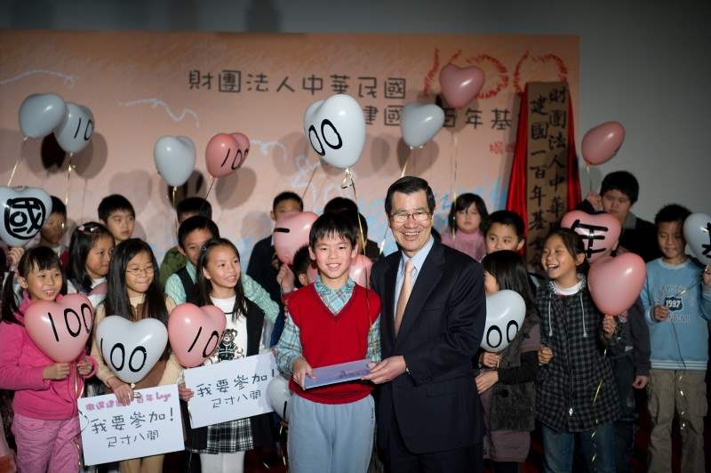 隨後,台北市立國語實驗國民小學的小朋友們進行揭牌,活潑的小朋友們發揮創意與童趣,紛紛表達他們想像中的建國百年活動,包括在蝴蝶谷展示一百種台灣蝴蝶、在一百個氣球上寫上一百個人的願望…等,讓現場人士對他們的童趣與無限寬廣的想像力,抱以熱烈掌聲。