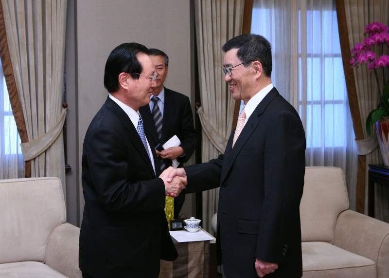 蕭萬長副總統今天下午在總統府接見韓台議員親善協會趙鎮衡會長一行,對訪賓來台,代表政府與人民表達由衷歡迎之意。